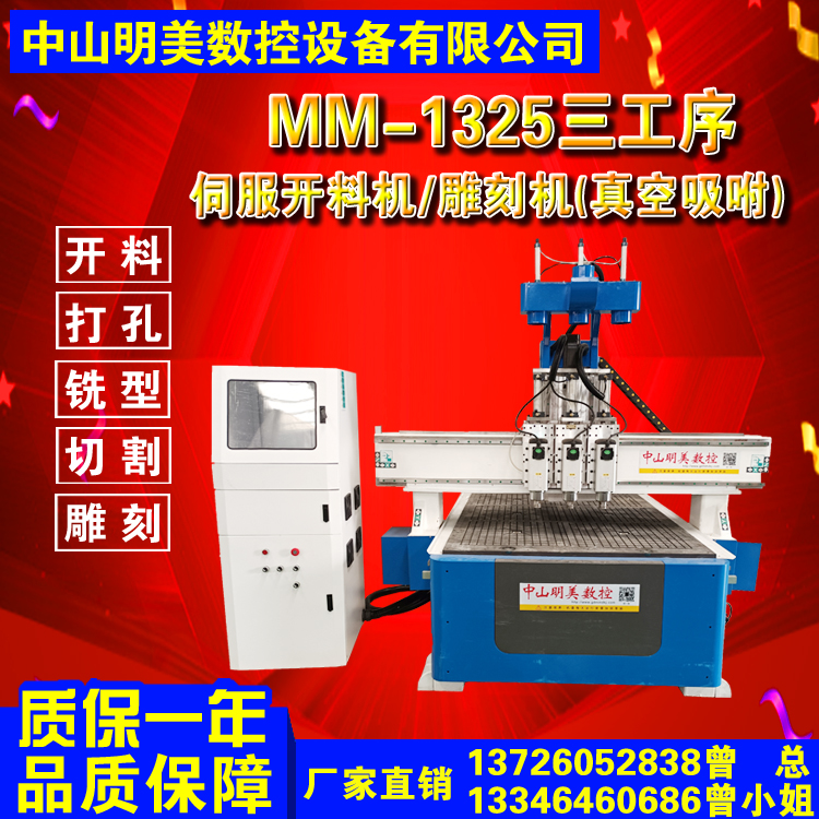 創新的設計及高精度的制造,使機床的性能比以前提高50%,高強度的鋼性結構。 2、三軸原裝進口導軌,絲杠,伺服電機,速度快效率高,是普通機器的3-5倍。 3、高速度變頻水冷主軸,配工業冷水機,扭矩大,轉速高,加工效率高,使用壽命長